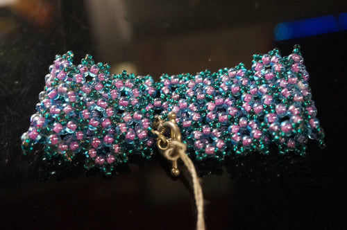 Blue/Purple Flower Beaded Bracelet - Caliculturesmokeshop.com