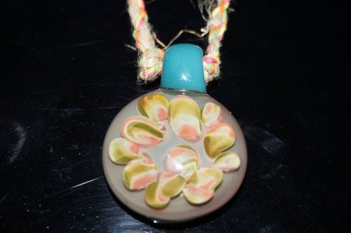 Large Glass Pink/Green Flower pendent with hemp chain - Caliculturesmokeshop.com